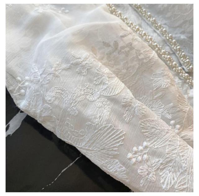| 襟元や前立てにパールを施したエレガントなカーディガン。 繊細な刺繍模様をシアー素材に乗せた、シーズンムード満点なシアーカーディガン。 日焼け対策や冷房対策にも使える、1着持っていると今季活躍すること間違いなしのアイテムです。 | |