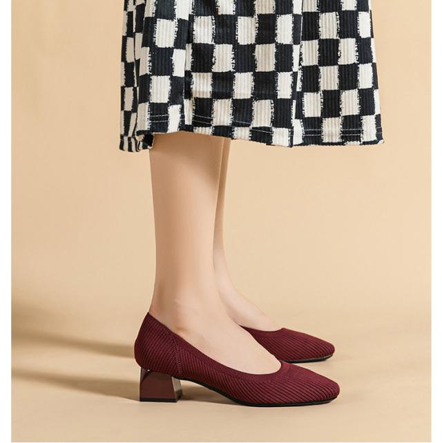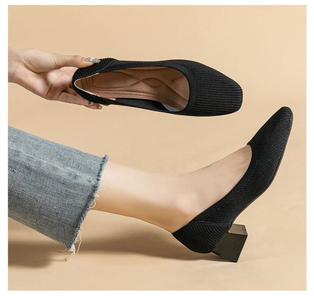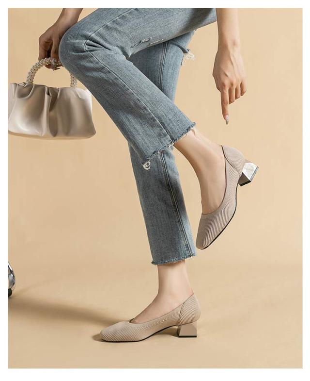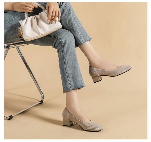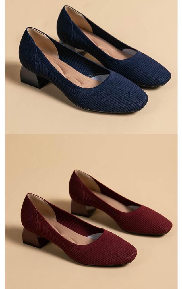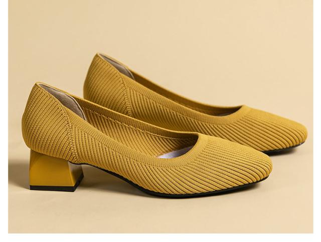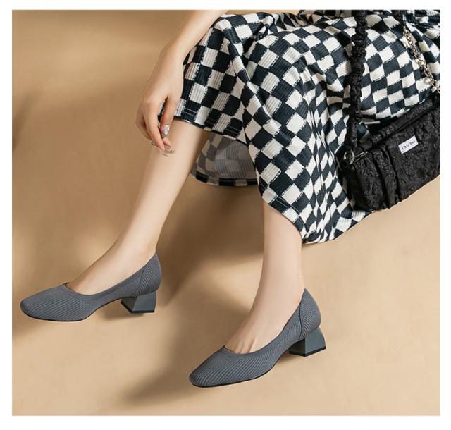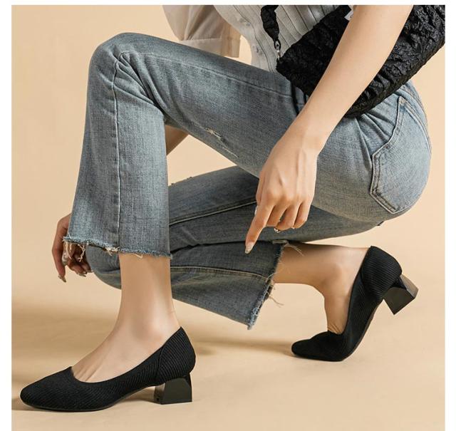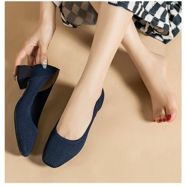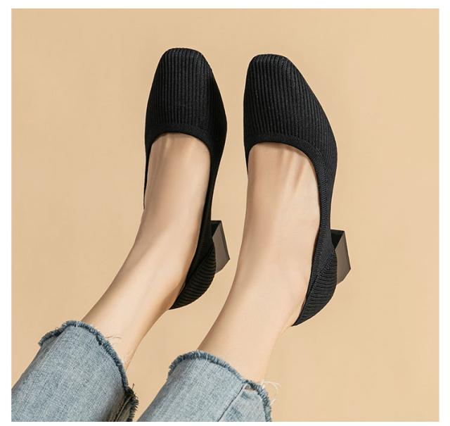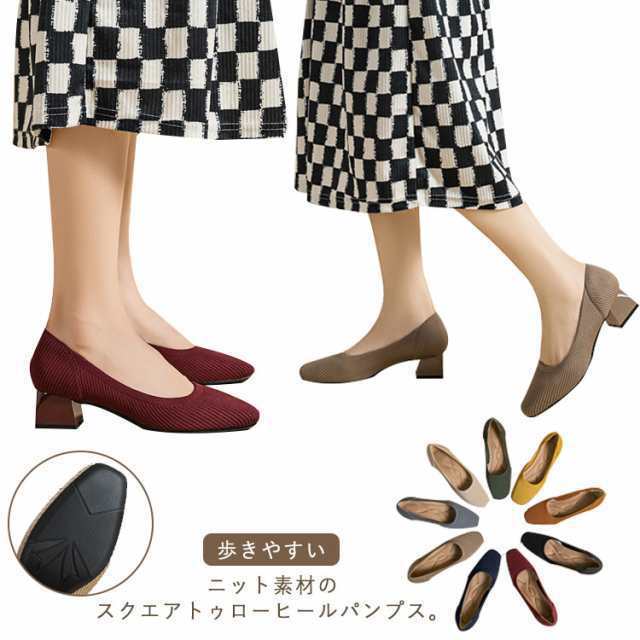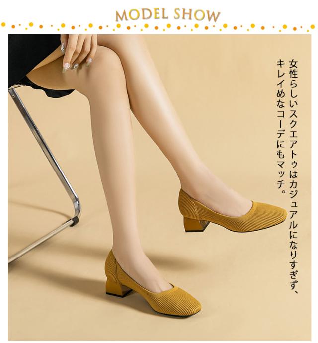 ローファーパンプス 立ち仕事 ニット 冠婚葬祭 歩きやすい ローヒール 太ヒール スクエアトゥ 痛くない カジュアル 通勤 シューズ 韓国 無地 レディース 靴 ニットシューズ フォーマル きれいめ パンプス ブラック 母の日 大きいサイズ 春夏 パンプス