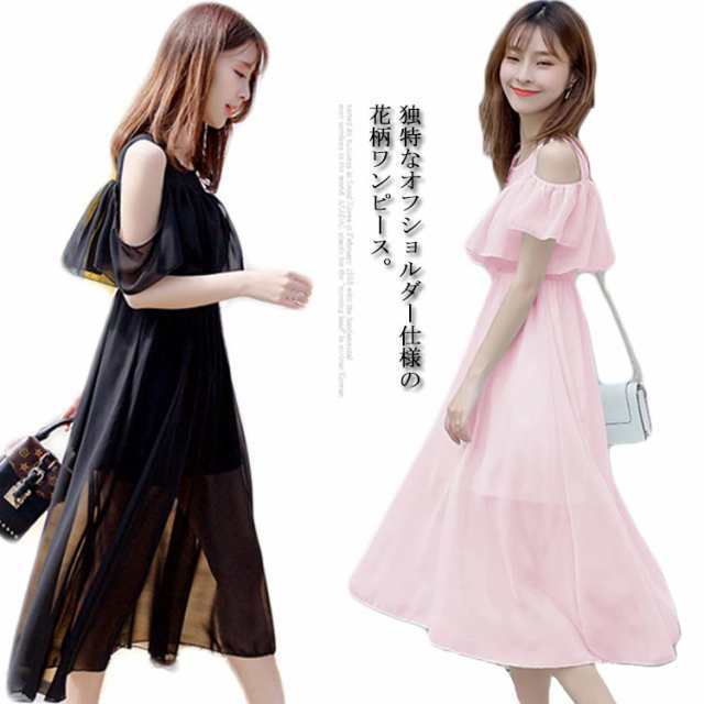ワンピース 花柄 マキシワンピース レディース 無地 花柄 肩出し オフショルダー シフォン マキシワンピ 半袖 花柄ワンピ フレア ボヘミアン ビーチ ガールズ 着やせ リゾート パーティー 旅行 シフォンワンピース 大きいサイズ
