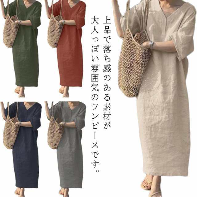 ワンピース 春夏 レディース リネンワンピース 春 綿麻ワンピース 大人 きれいめ Aラインワンピース ゆるワンピース春夏 可愛い 二の腕 おしゃれ ロングワンピース 体型カバー お出かけ 大きいサイズ カジュアル ナチュラル 森ガール 無地 S-5XL