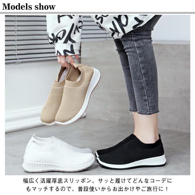 | 23-25.5cm!通気性のよいメッシュ素材を使用したスニーカー。 アッパーは通気性抜群のニットを採用して、通気性も改善させるので、 熱がこもるのを防ぎ、さわやかな履き心地を提供してくれます。長い時間履いても快適! ソールは柔らかく、弾力もあり、多方向に曲がり足の動きをサポートしてくれ、歩きやすい!長時間歩いても疲れにくい! 防滑や耐磨耗性は抜群! 一年中使える!フライニット素材なので春夏はもちろん秋冬にも♪オールシーズン履く事ができます! 幅広く活躍厚底スリッポン。サッと履けてどんなコーデにもマッチするので、普段使いからお出かけやご旅行に! | |