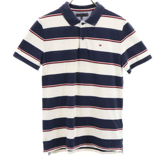 TOMMY HILFIGER トミーヒルフィガー ボーダー柄 半袖 ポロシャツ 164 ネイビー 鹿の子 キッズ