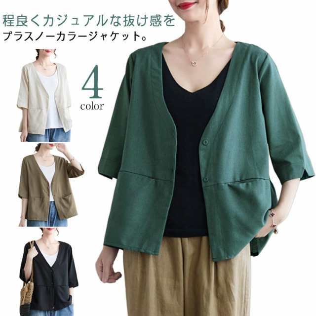 トップス 夏 レディース ボレロ ノーカラー アウター サマージャケット Vネック 無地 ジャケット 薄手 羽織り 半袖 ノーカラージャケット シンプル フォーマル きれいめ カジュアル 春夏