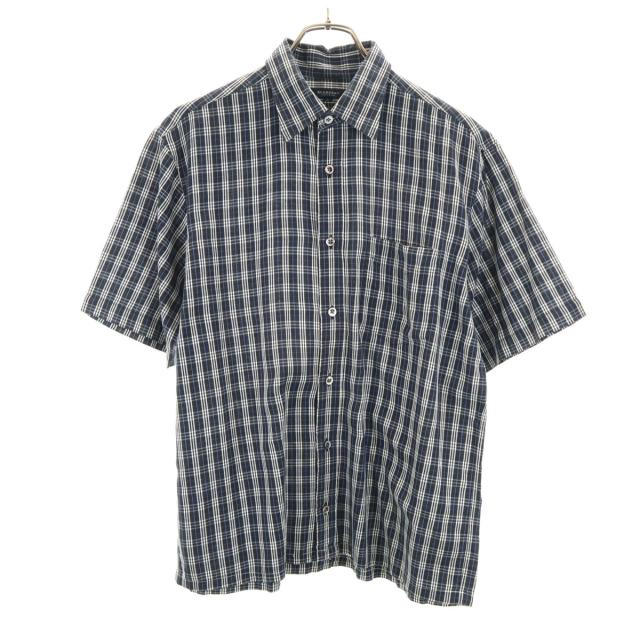 バーバリーロンドン チェック柄 半袖 コットンシャツ L ネイビー BURBERRY LONDON 三陽商会 メンズ