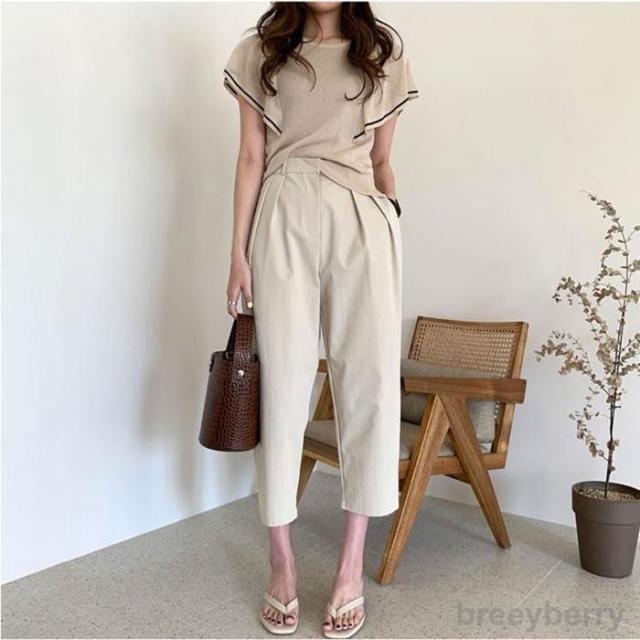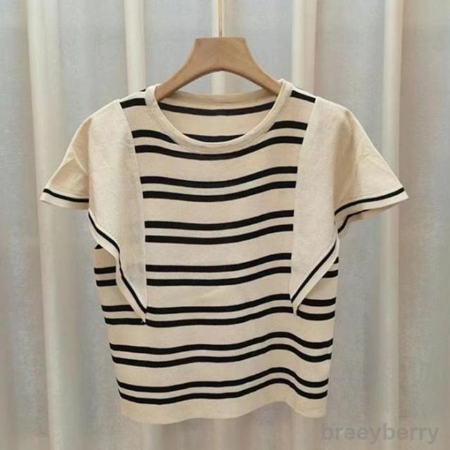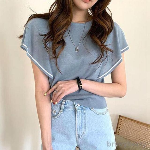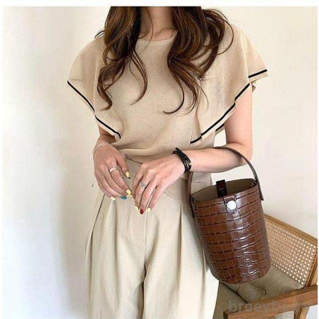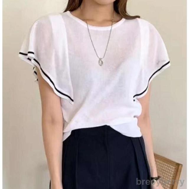 ニット レディース トップス Tシャツ 接触冷感ニット 半袖 フリル袖レディース 夏 フリル袖Tシャツ