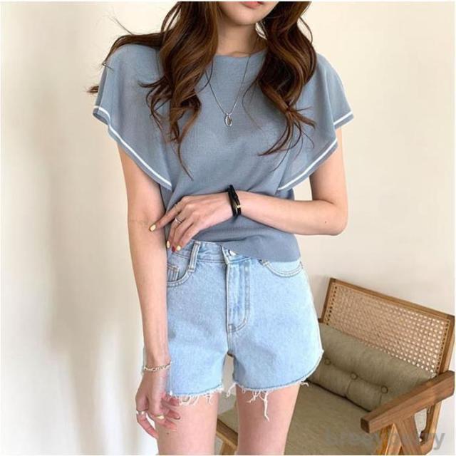 サマーニット レディース トップス Tシャツ 接触冷感ニット 半袖 フリル袖レディース 夏 フリル袖Tシャツ