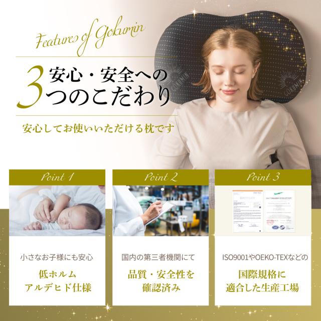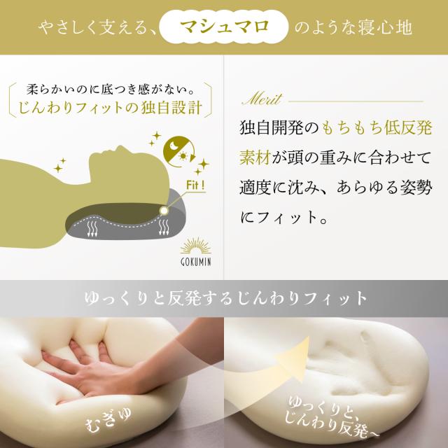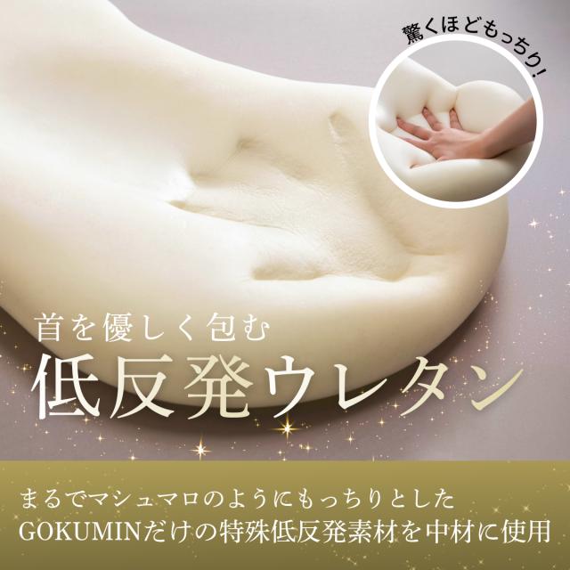 GOKUMIN独自のもっちり低反発ウレタンを中材に使用。もちもちでやわらかくじんわりと頭や首の形に合わせてフィットし、心地よい眠りへと導きます。