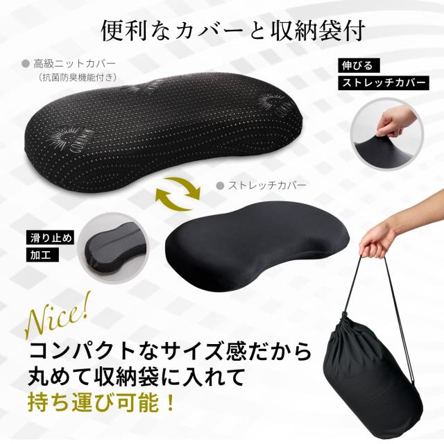 抗菌・防臭加工を施した高級ニットカバーと、ストレッチカバーがそれぞれ1枚ずつ付属しており、洗い替えにも便利です。収納袋付き。
