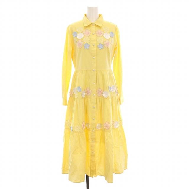 【中古】チェスティ Chesty フラワーモチーフ 刺繍 シャツワンピース ロング 長袖 0 黄色 20C505 /YM レディース