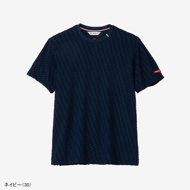 吸汗速乾性のある天然繊維ライクなポリエステル製ベルアイビーのパイル素材を採用した半袖Tシャツ。シーズンイメージであるモナコのF1レースからインスピレーションしたチェッカーフラッグを地柄で表現したキッチュで遊び心のある大人可愛い雰囲気のアイテムです。素材も縫製も日本国内手配のJ∞QUALITY認証取得アイテムとなっております。