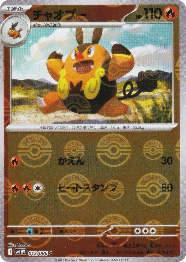 【ミラー仕様/モンスターボール柄】ポケモンカードゲーム SV11W 012/086 チャオブー 炎 (C コモン) 拡張パック ホワイトフレア