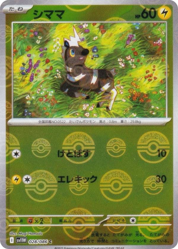 【ミラー仕様/モンスターボール柄】ポケモンカードゲーム SV11W 028/086 シママ 雷 (C コモン) 拡張パック ホワイトフレア