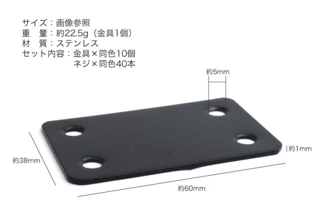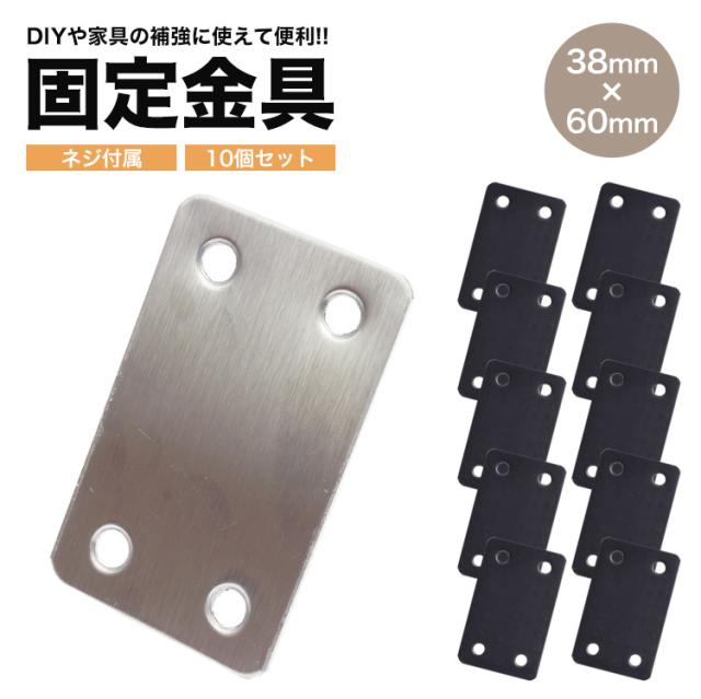 10個セット 金具 ストレート プレート DIY ワイド 長方形 フラット 連結金具 38mm×60mm ネジ付属 リノベーション 金具 I型 地震対策 耐震 家具 固定 補強 パーツ 便利 ステンレス