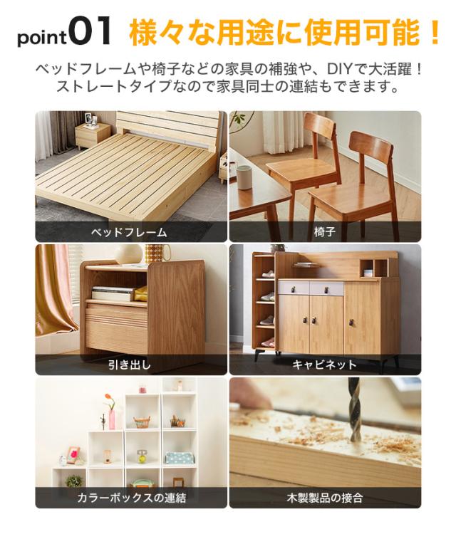 DIYや家具の補強など、様々な用途に使用が可能な固定金具。