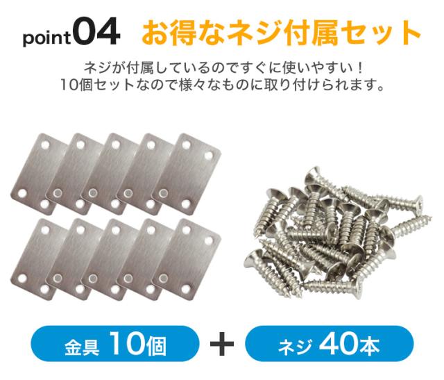 金具10個とネジ40本セットですぐにご使用いただけます。