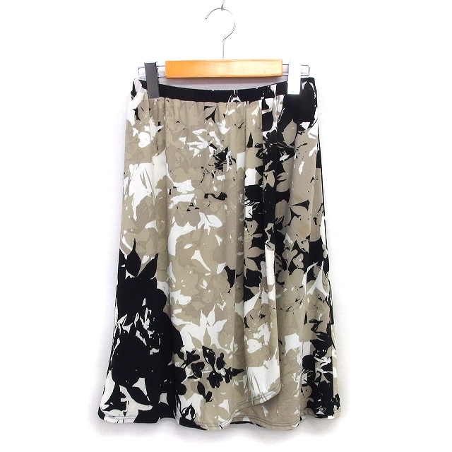 【中古】スーパービューティー Super Beauty フレア スカート ロング ボタニカル柄 フロントクロス ゆったり 40 黒