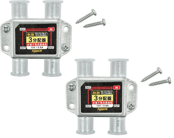 | 商品名 | F-Factory アンテナ3分配器 4K8K/BS/CS/地デジ/CATV対応 全端子電流通過型 テレビ分配器 3分配 3224MHz対応 2個入 FNT-DL3-2P |