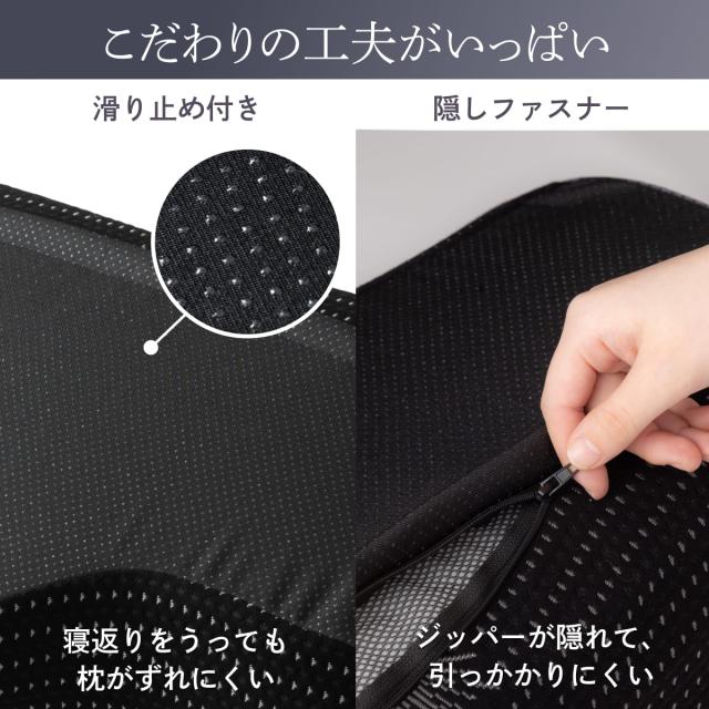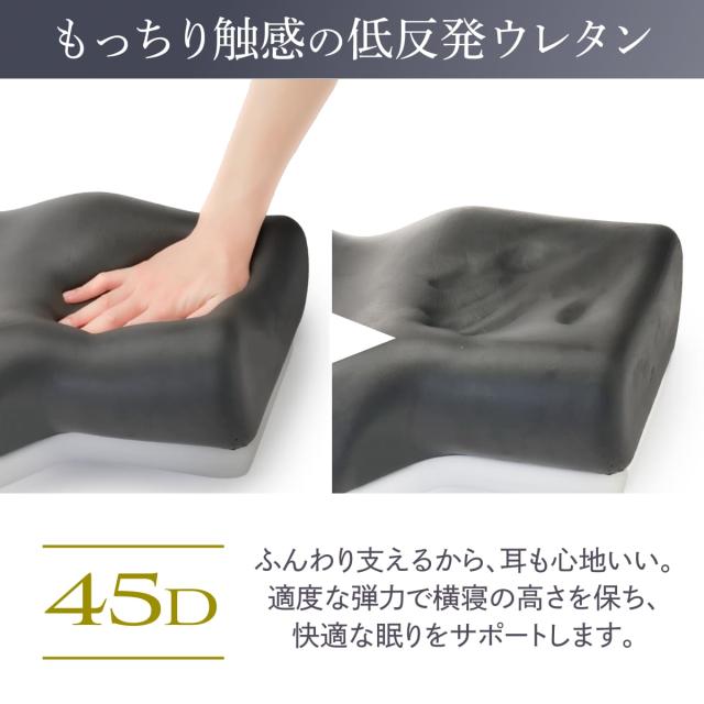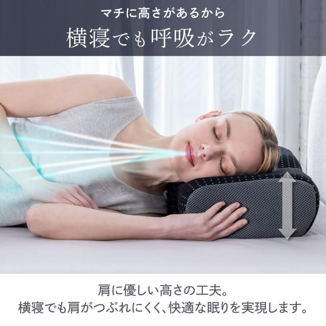 寝返りをしても横幅60cmの広さが頭を支え続け、もっちりとした低反発の感触が肩や首をしっかり支えるため、横向きの寝姿勢でも朝まで快適な眠りをサポートします。
