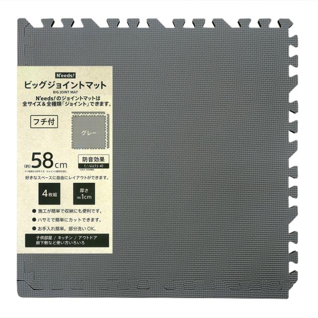 Needs 大判 ジョイントマット ビッグジョイントマット 厚さ1cm 4枚組 グレー フチ付き 大判 防音 インテリア リビング 子供部屋 キッチン プレイマット キッズ ベビーマット 赤ちゃん おしゃれ ジョイント マット 【Ns】