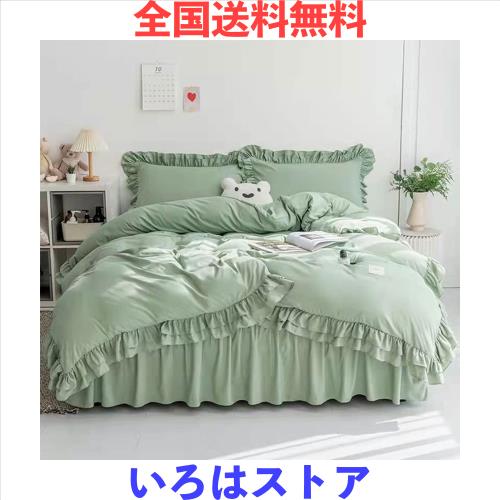 布団カバー フリル ベッドカバー 可愛い 寝具カバー 洗える 掛け布団カバー ボックスシーツ 枕カバー かわいい 布団かばー アイボリー 洋