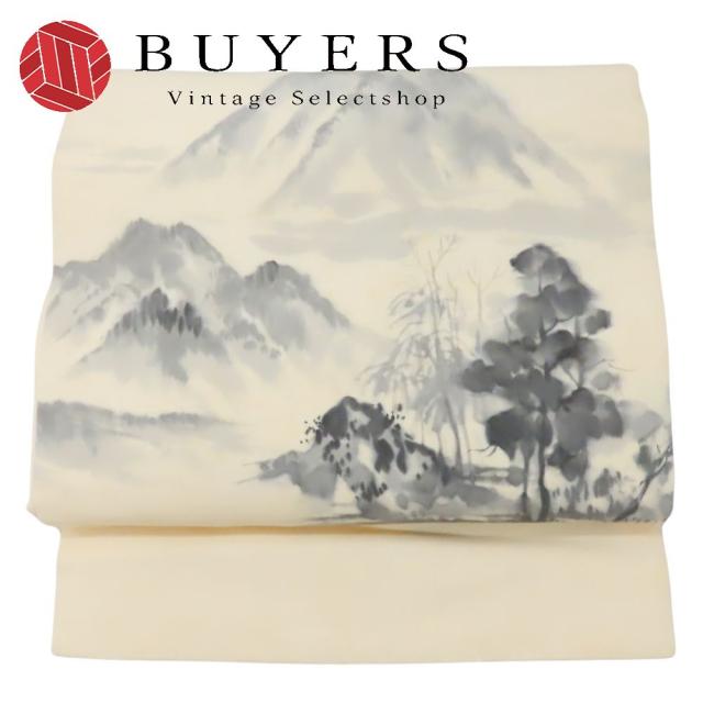 中古 名古屋帯 正絹 オフホワイト 名古屋仕立て 和装 呉服 和服 きもの レディース 女性