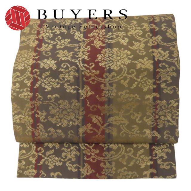 | 品名 | 中古 名古屋帯 正絹(金銀糸除く) カーキ 名古屋仕立て レディース 女性 |
