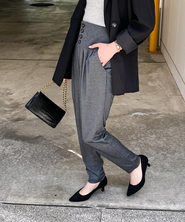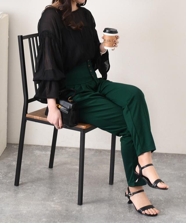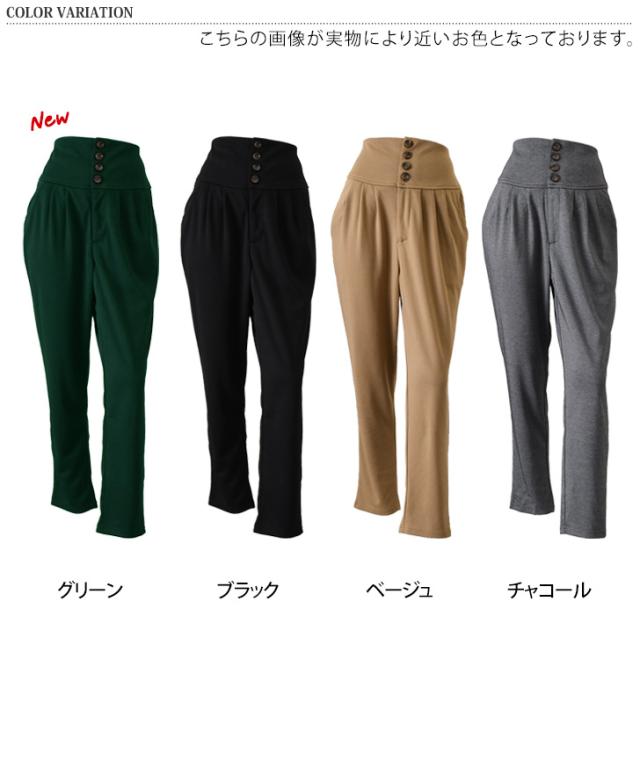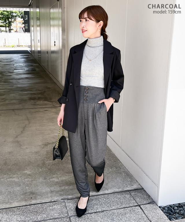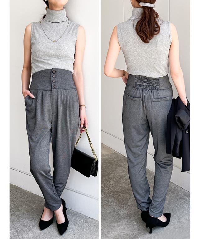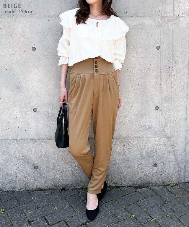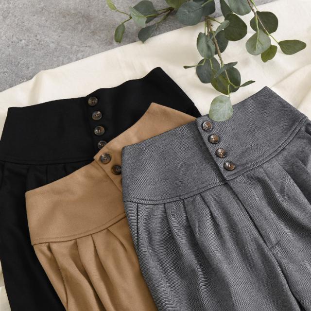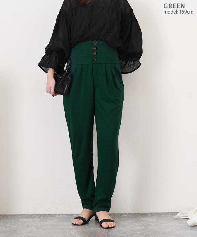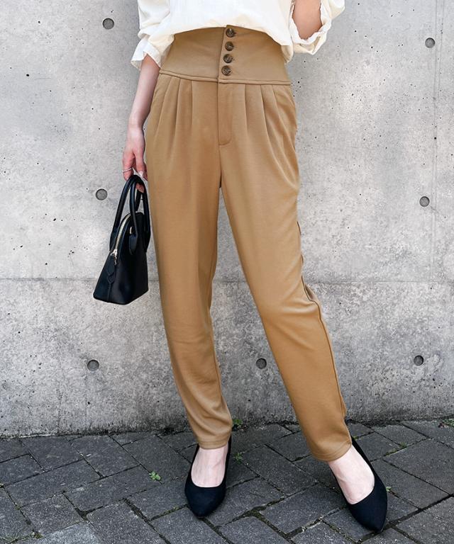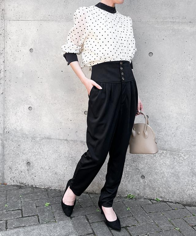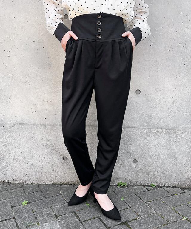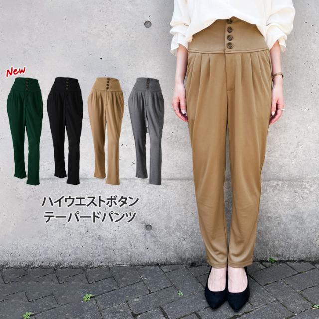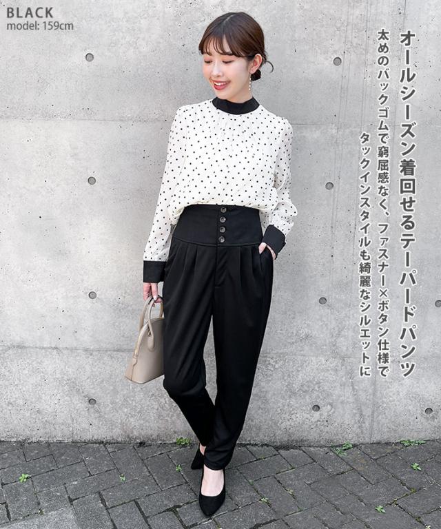 新作 サイドポケットタック入りハイウエストボタンテーパードパンツ レディース ボトムス ズボン 黒 ウエストゴム コットン100% 綿100% オフィス きれいめ OL 仕事 低身長 高身長 カジュアル デイリー