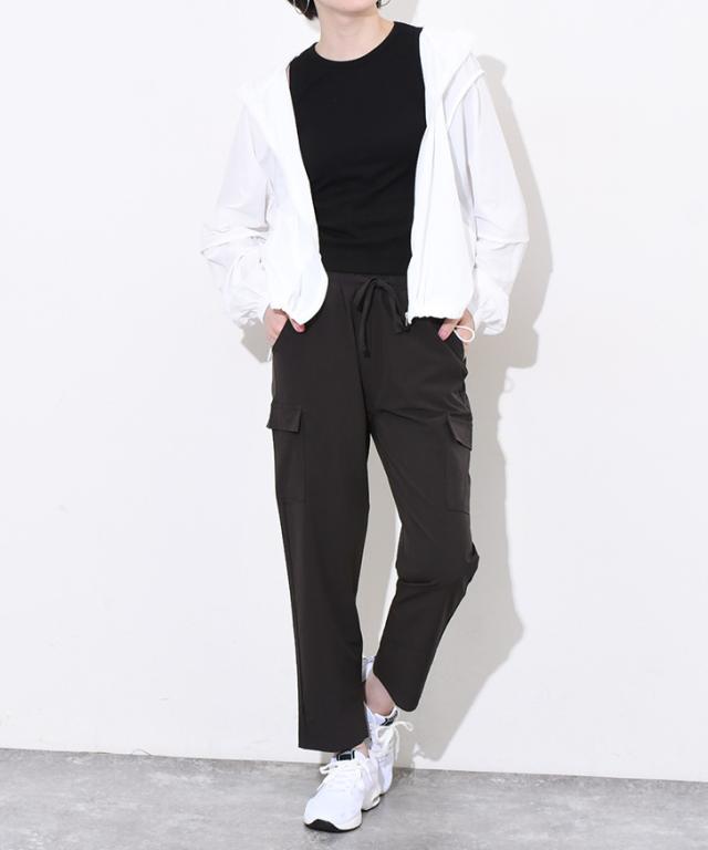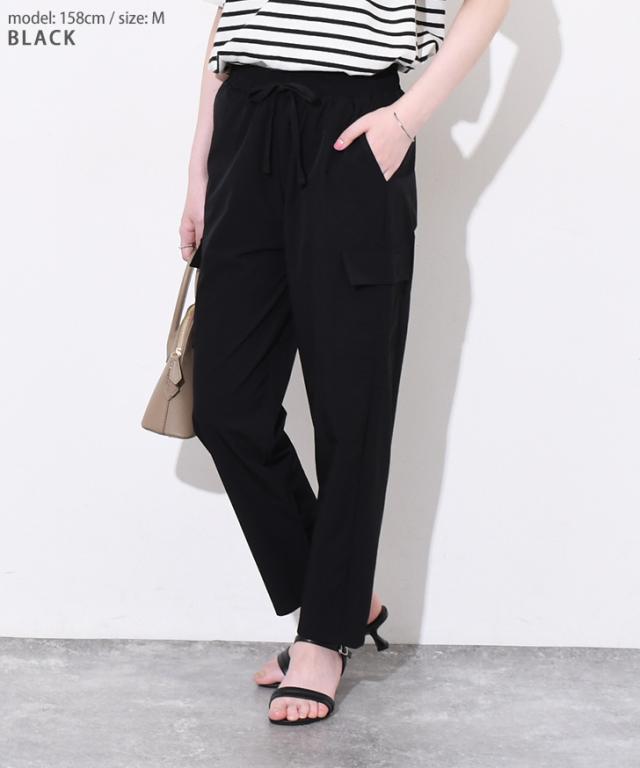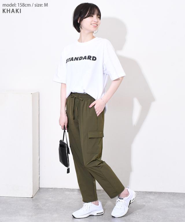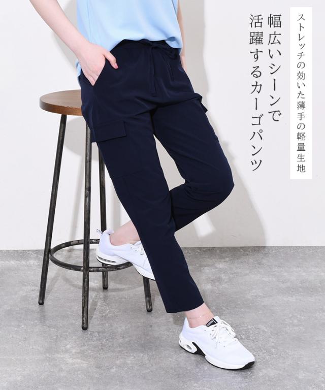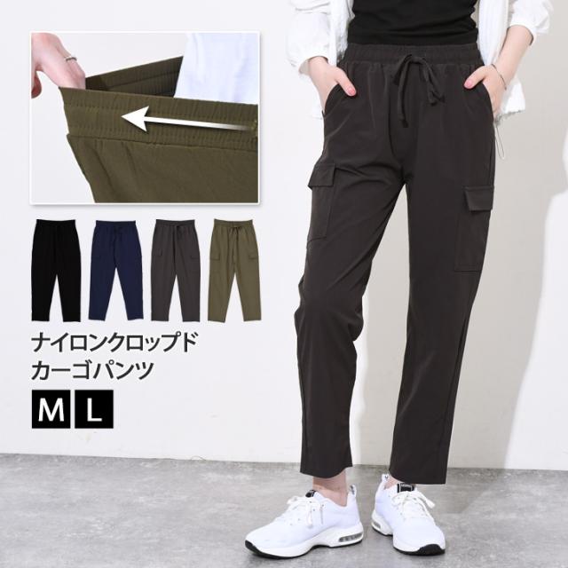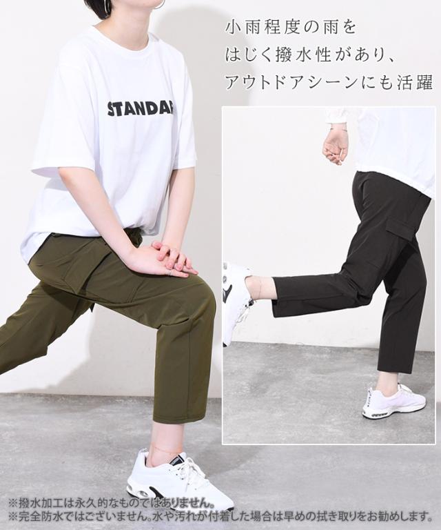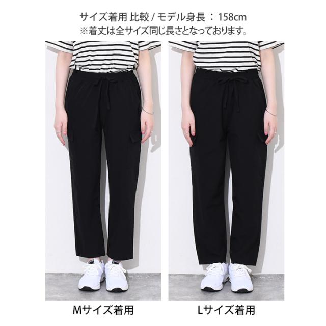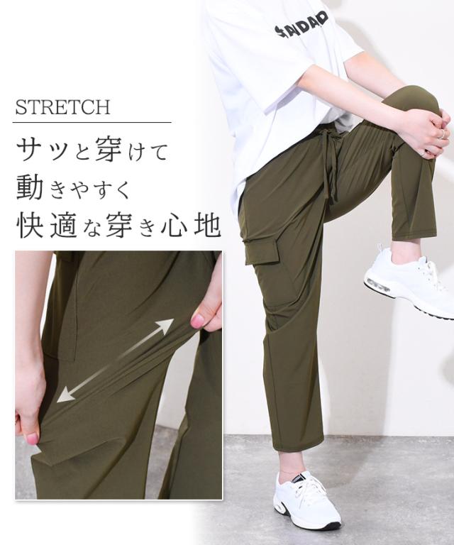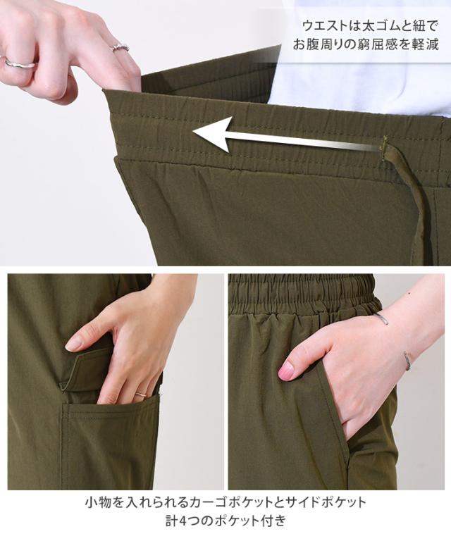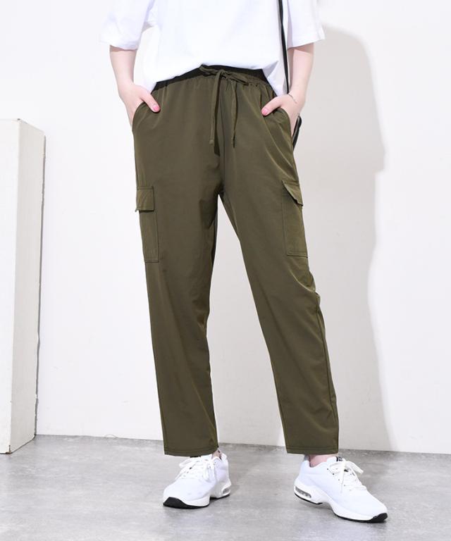 新作 サイドポケットドローストリングナイロンカーゴパンツ レディース 夏 ズボン ボトムス 九分丈 アンクル丈 ストレッチ ワークパンツ ウエストゴム 撥水 薄手 涼しい 涼感 運動 スポーツ カジュアル アウトドア