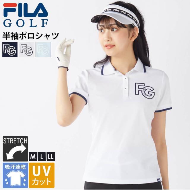 【30%OFF】フィラゴルフ FILA GOLF ポロシャツ 半袖 レディース 吸汗速乾 ストレッチ UVカット 紫外線対策 ゴルフウェア ブランド ロゴ プリント ワンポイント 軽量 ハーフボタン おしゃれ 可愛い スポーツウェア 白 紺 春 夏 2025ss karlas