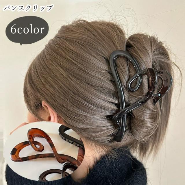 バンスクリップ ヘアクリップ 髪留め レディース 女性 ヘアアクセサリー ファッション雑貨 ハート型 無地 ブラック ブラウン