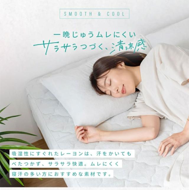 レーヨンは熱伝導が高いので寝返りをうつたび、ほんのりと涼しい素材です。