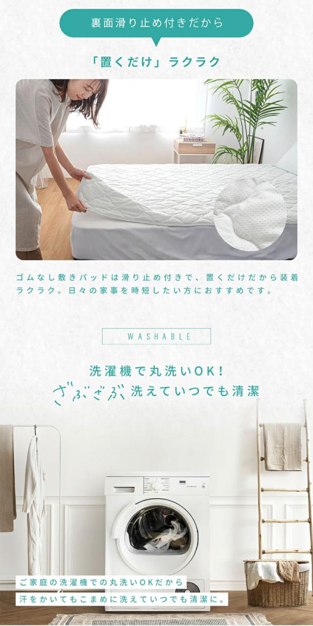 ゴムなし敷きパッドは滑り止め付きで、置くだけだから装着ラクラク。