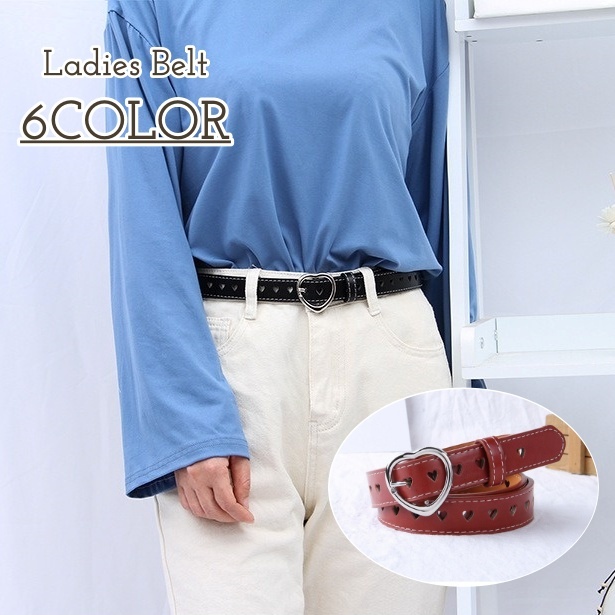キュートなハートバックルが目を惹く、レディース用ベルトです。