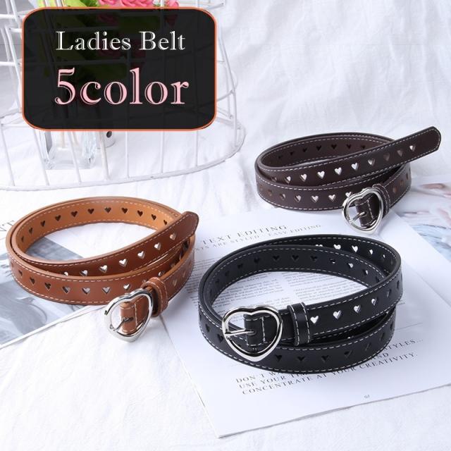 ハート型のバックルやホールが可愛い、レディース向けのベルト。