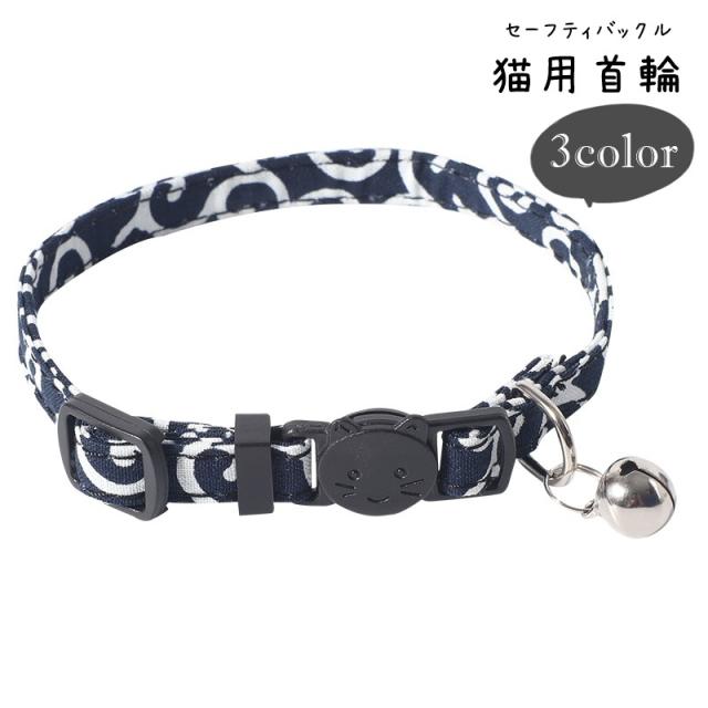 猫用首輪 ネコ用首輪 カラー 小動物用 ペット用品 ペットグッズ セーフティバックル 安全バックル 鈴付き 総柄 唐草模様 レッ