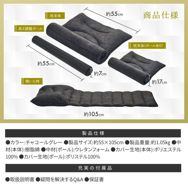 くるっと丸めて頸椎をサポートしたり、折り畳んで高さを調整したり、使い方は思いのまま。ポールを入れずに巻けば首部分10cm、ポールを入れて巻けば17cmの高さになります。そのままシートとして眠れば、寝汗対策にも!毎朝の目覚めが変わる感動をぜひお試しください。
