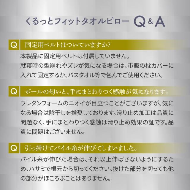 くるくるふんわり、タオル生地のやさしさに包まれる枕です。普段は「枕をご使用されていない方」、「肌触りの良いふんわり素材」で自分に合う枕を探していた方へ最適。ストレートネック対策に毎日タオルで枕を作っている方へもおすすめです。自由度と使いやすさと寝心地ででストレスを軽減し、これまでにない心地よさと柔軟さで、あなただけの快適な眠りへ導きます。