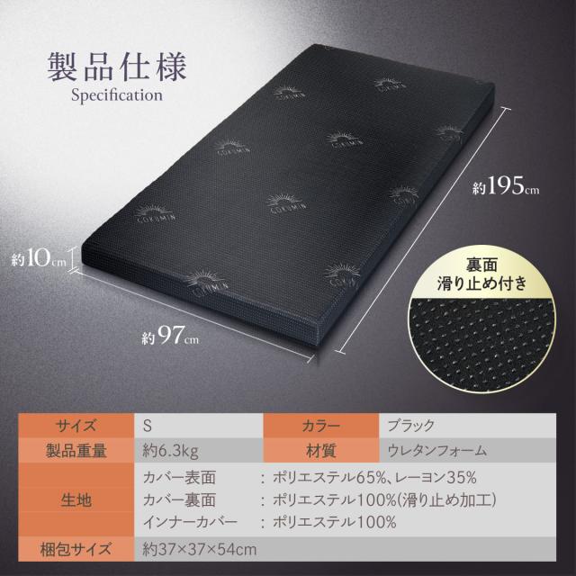 GOKUMIN 腰部強化 高反発マットレス シングル 厚さ 10cm 折りたたみ 体圧分散 ベッドマットレス マットレストッパー 敷布団 敷き布団 抗菌 防臭 ウレタン 長持ち 洗えるカバー おりたたみ 1年保証