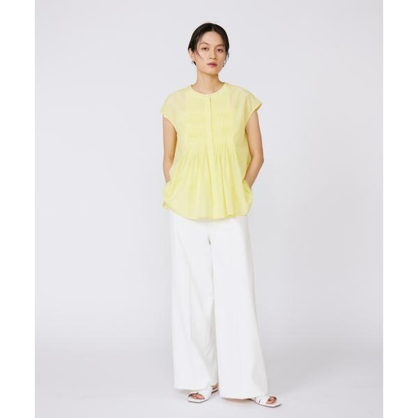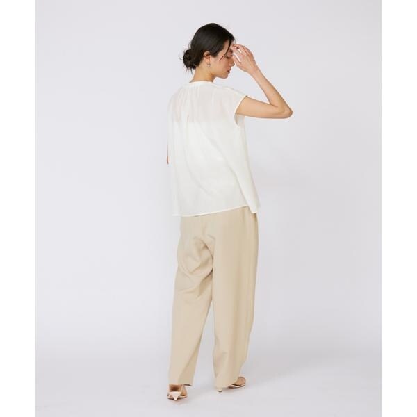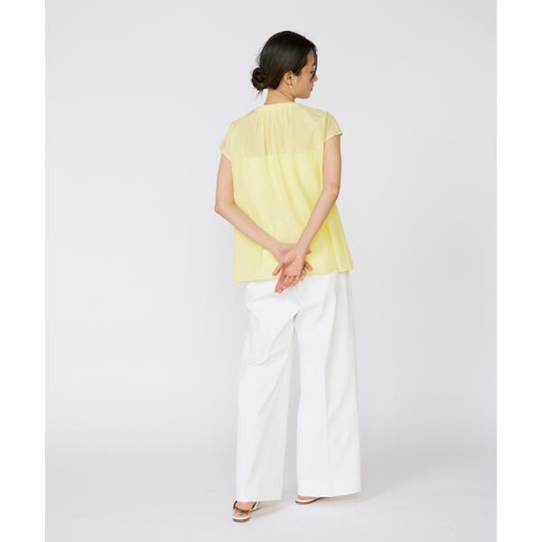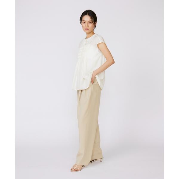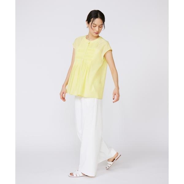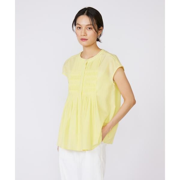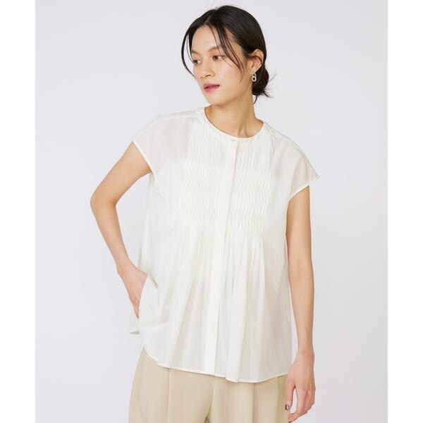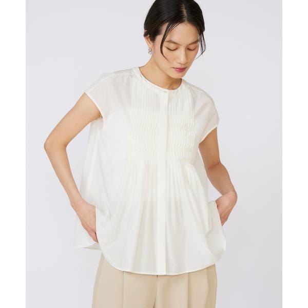 ■デザインフロントのピンタックがクラシカルで上品な印象のブラウス。フレンチスリーブで気になる肩周りや二の腕も、華奢な印象にみせてくれます。タックギャザーたっぷりの柔らかなシルエットで気になるボディラインも優しくカバー。キュプラの持つ光沢感と柔らい肌触り、ドライタッチな素材を使用し、ゆとりのあるリラクシーなシルエットのブラウスはノンストレスな着心地です。■素材キュプラの持つ光沢感、しなやかさに天然素材のコットンをブレンドしたとても扱いやすい素材。キュプラの持つ光沢・柔らかさや肌触りはそのままに、ドライタッチを加え、繊細ながらハリコシがあります。接触冷感。・バックボタンあり・水洗い可■サンプル撮影商品■こちらの商品はサンプルでの撮影となっております。実際の商品とは、サイズや色味、素材、デザイン等の仕様が若干変更になる場合がございます。