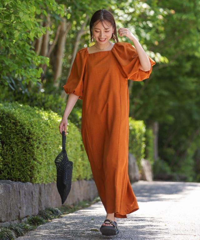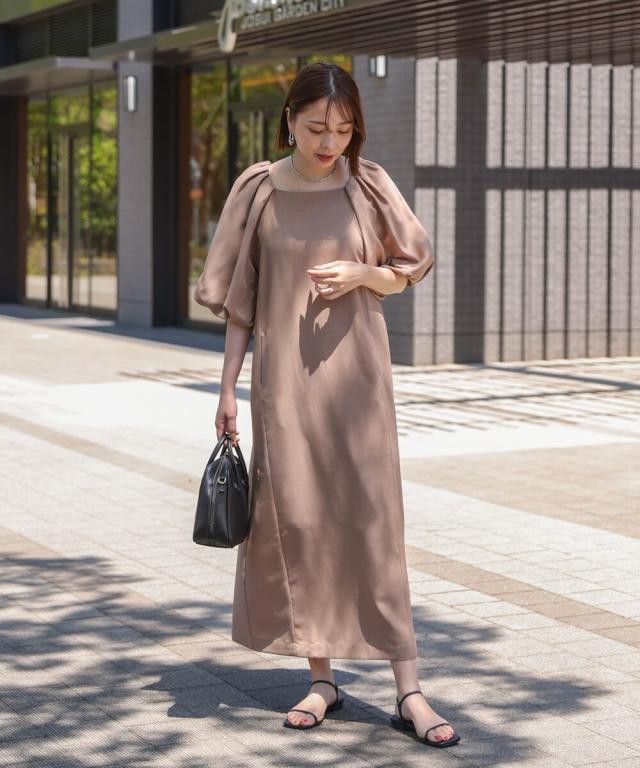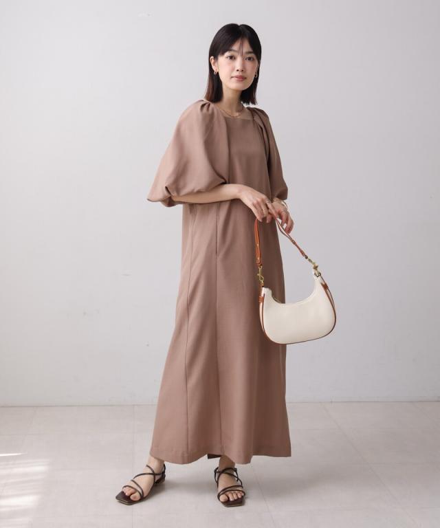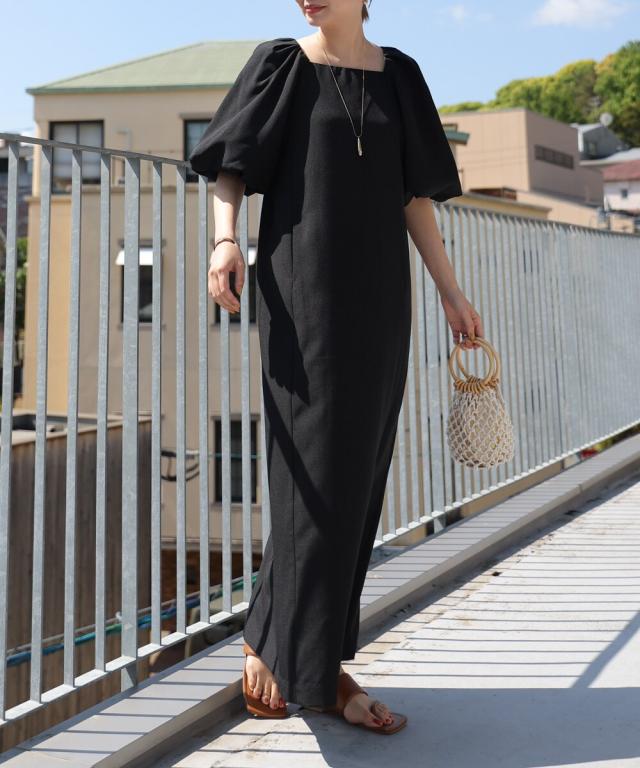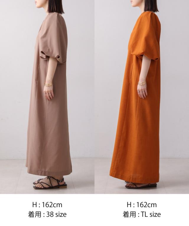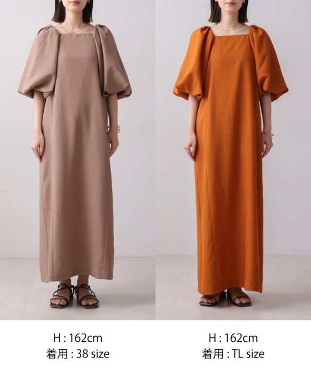 合わせるアクセサリーや小物でキレイ目にもカジュアルにも使えるワンピースは着るだけでスタイリングがきまる嬉しい一枚。38とTLの2サイズ展開で身長で長さが選べ、大きいなパフが二の腕周りをスッキリ見せてくれるのも嬉しいポイントです♪