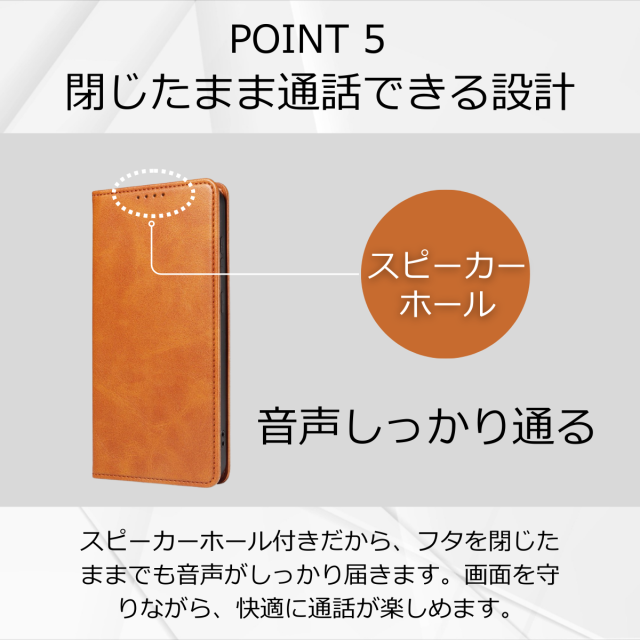 スピーカーホールのおかげでケースを開かずにそのまま通話が可能。手がふさがっているときにも役立ちます。