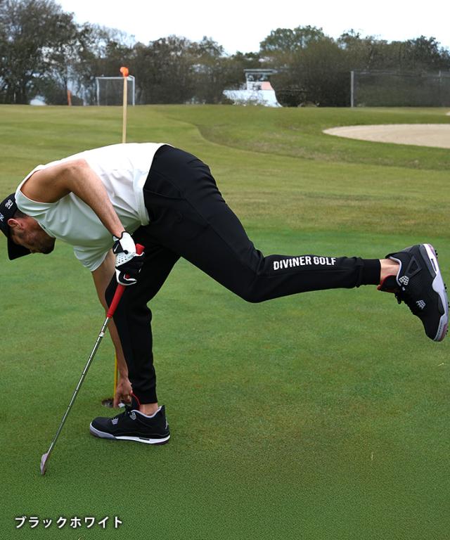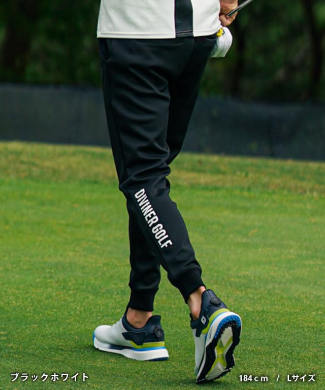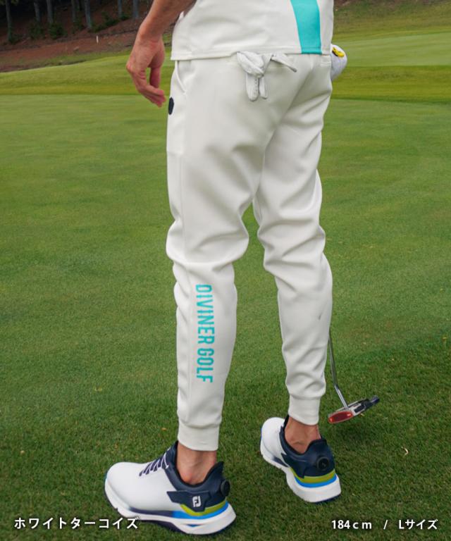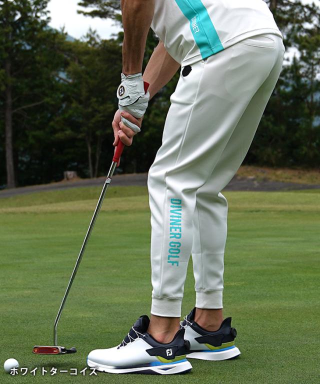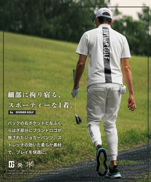 DIVINER GOLF(ディバイナーゴルフ)『裾ロゴジョガーパンツ』【裾ロゴジョガーパンツ】■Design/デザイン一度穿いたら、もう手放せない。アクティブな日にも頼れる、裾ロゴが印象的なジョガーパンツ。さりげなく主張する裾の「DIVINER GOLF」ロゴが、スタイリングにアクセントをプラス。軽やかで通気性のある素材は、汗をかいてもベタつかず、常に快適な穿き心地をキープしてくれます。裾はゴム仕様で動きやすく、スイング時のもたつきもなし。プレーに集中できるスマートな設計です。カラーは選べる3色展開。気分やスタイルに合わせてセレクトできるのも嬉しいポイント。スタイルと機能性、どちらも譲れない人にぴったりの一本です。