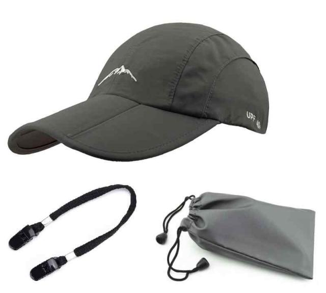 [D&W] 折り畳み 帽子 キャップ アウトドア 登山 釣り スポーツ 通気性 防水 男女兼用 メンズ レディース (Free Size, グレー)
