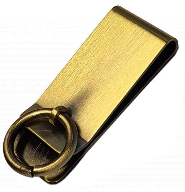 ベルトクリップ ホルダー 真鍮 日本製 おしゃれ ベルト バッグ キーホルダー リング付き (車 バイク 家 鍵 の プレゼント ギフト として) (アンティック ゴールド)