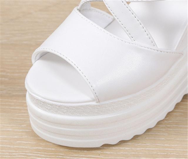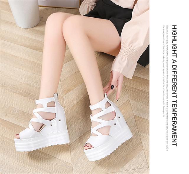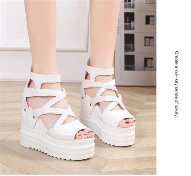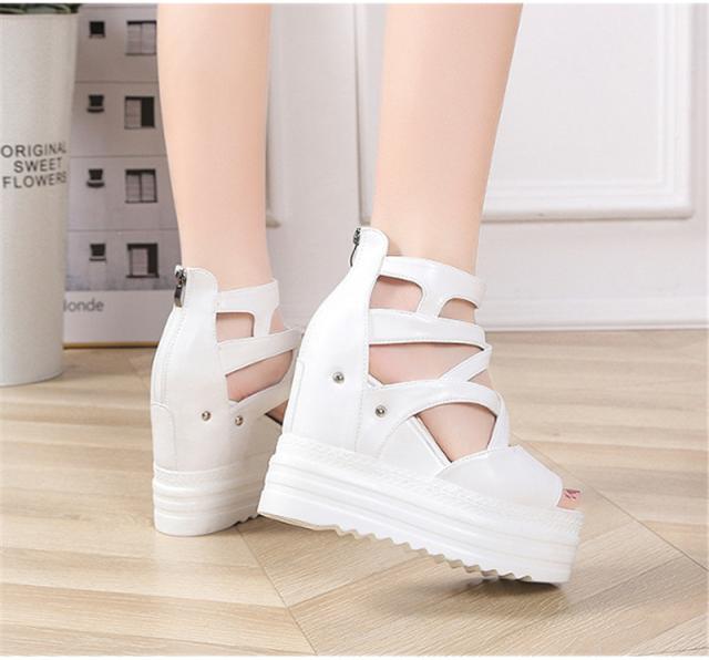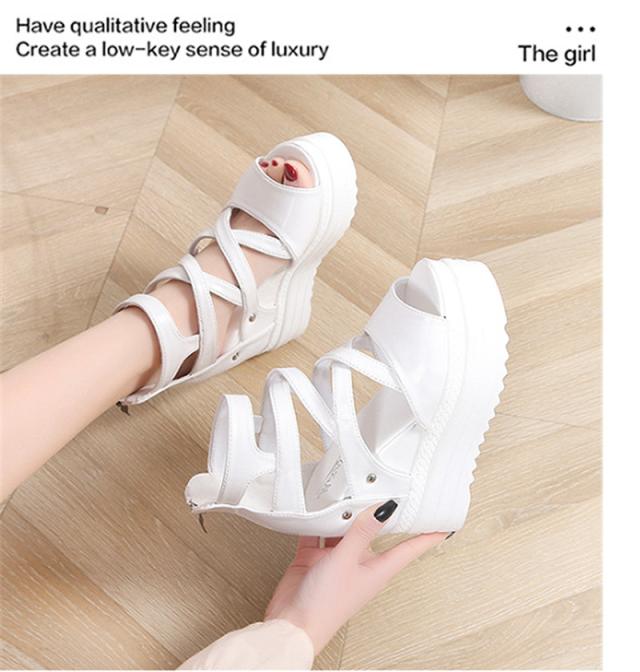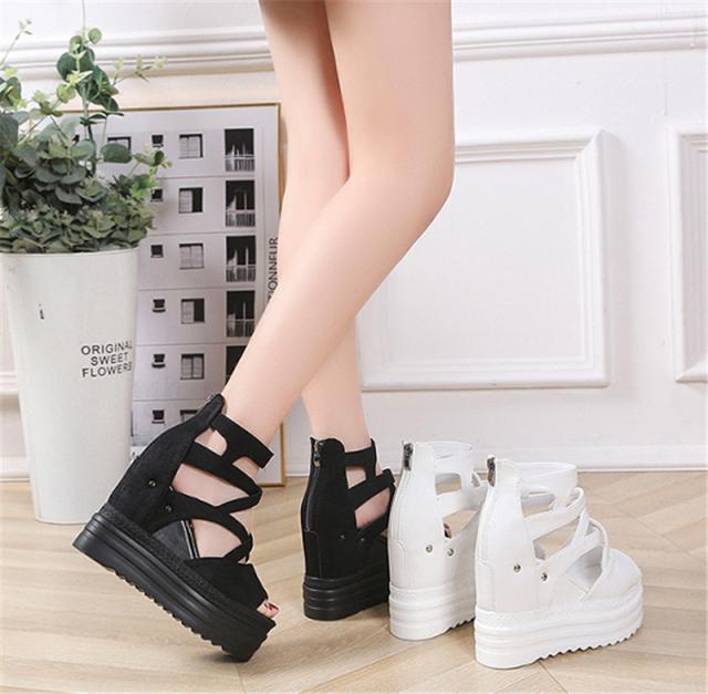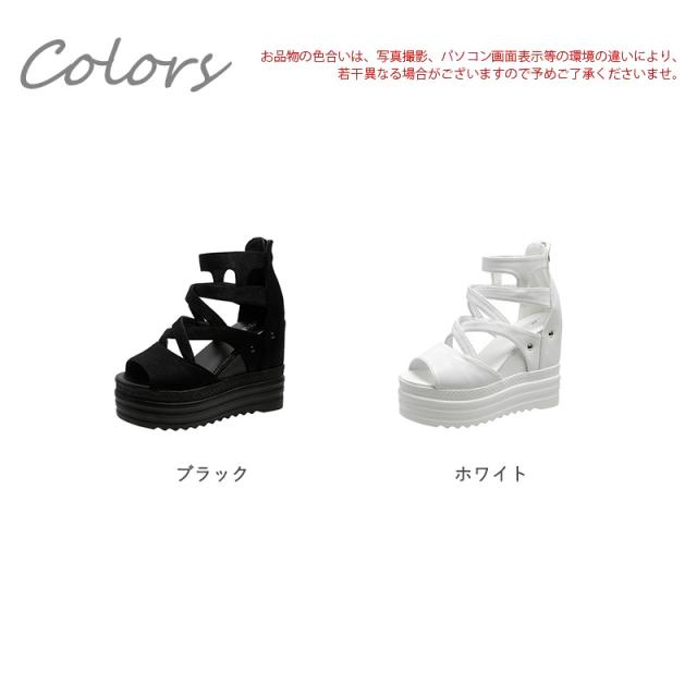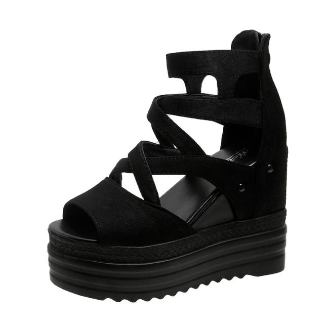 厚底サンダル レディース ウェッジソール オープントゥ バッグジッパー 11.5cmハイヒール 5.5cm防水台 歩きやすい 黒