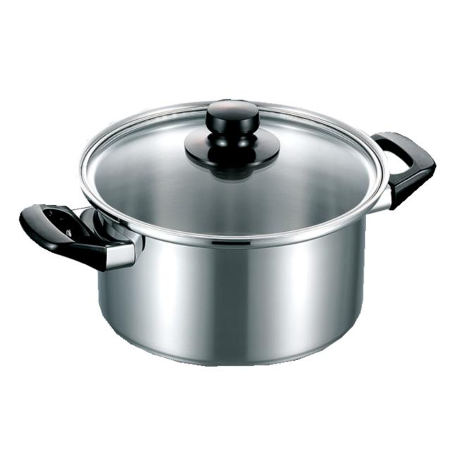 IHやハロゲン、ラジエントなどの電気調理器に合わせて作られた両手鍋です。錆びにくく熱効率に優れた特殊ステンレス「NSSC180」を使用するとともに、鍋の底面のみを厚くする特殊加工が施されているので、熱変形を防ぐことができます。