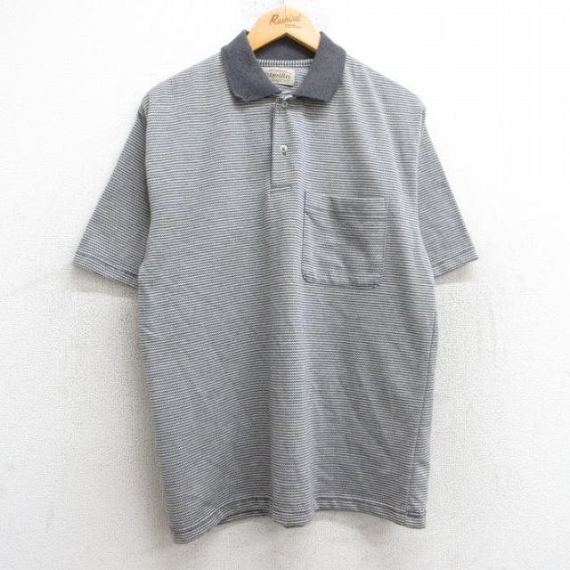 古着 半袖 ポロ シャツ メンズ 90年代 90s CAMP USA製 青 ブルー Lサイズ 中古 トップス 中古 古着