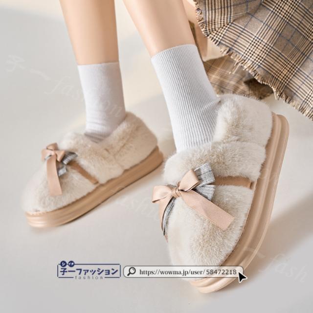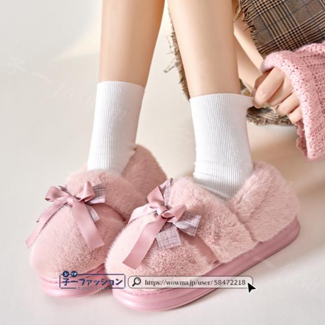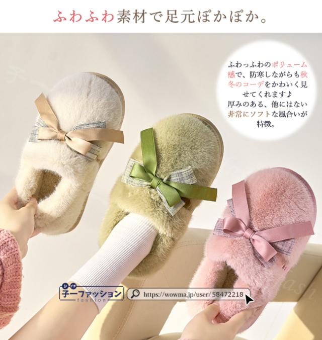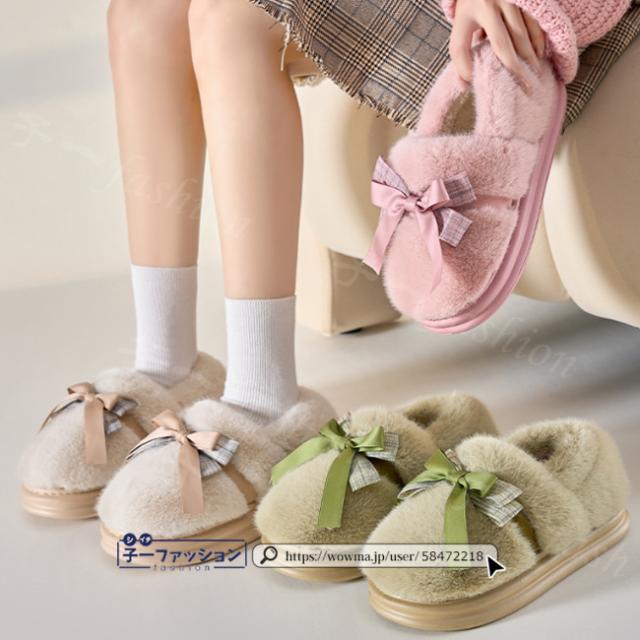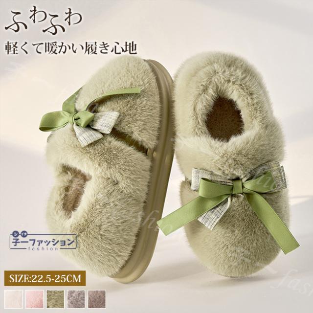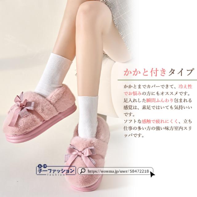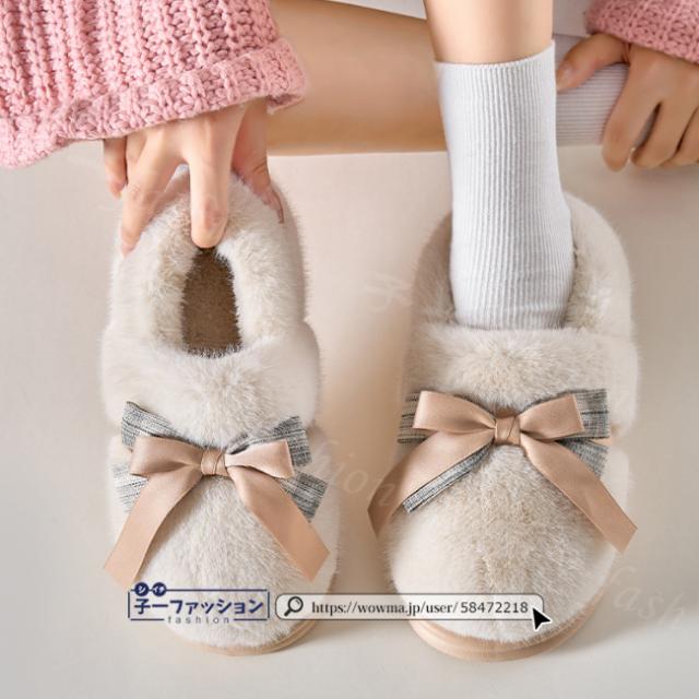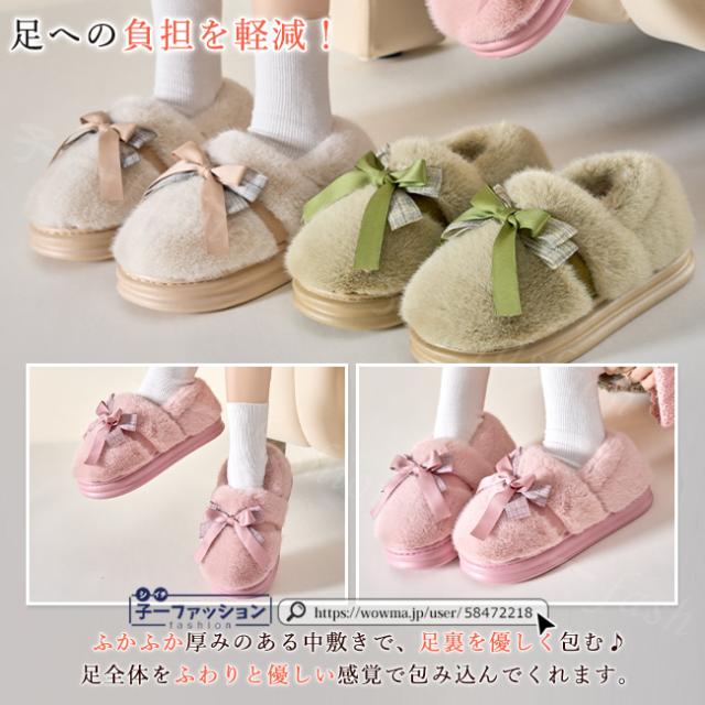 ルームシューズ レディース 春新作 秋冬 ボアスリッパ ファー リボン かわいい 暖かい 防寒 滑り止め 室内履き 洗える ふわふわ おしゃれ もこもこ あったか かかと付き 大きいサイズ 冷え対策 厚底 滑り止め スリッパ 学生 秋服