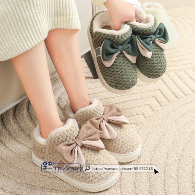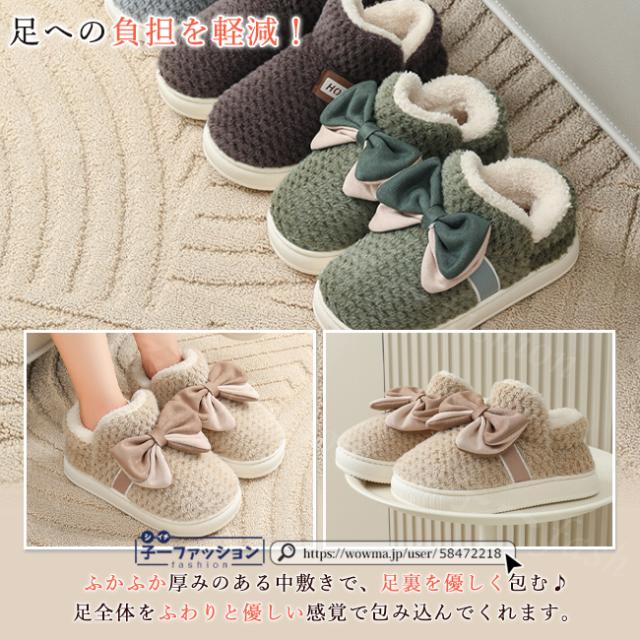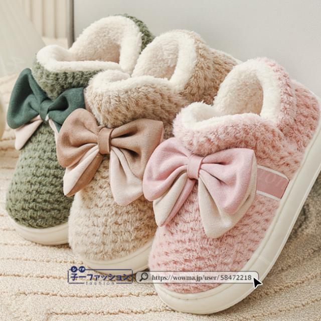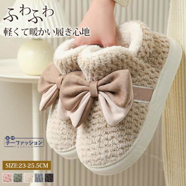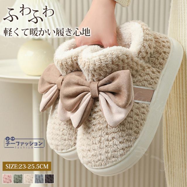 ルームシューズ レディース 春新作 秋冬 ボアスリッパ かわいい ファー リボン 暖かい 防寒 滑り止め 室内履き 洗える ふわふわ おしゃれ もこもこ あったか かかと付き 大きいサイズ 冷え対策 厚底 滑り止め スリッパ 学生 秋服