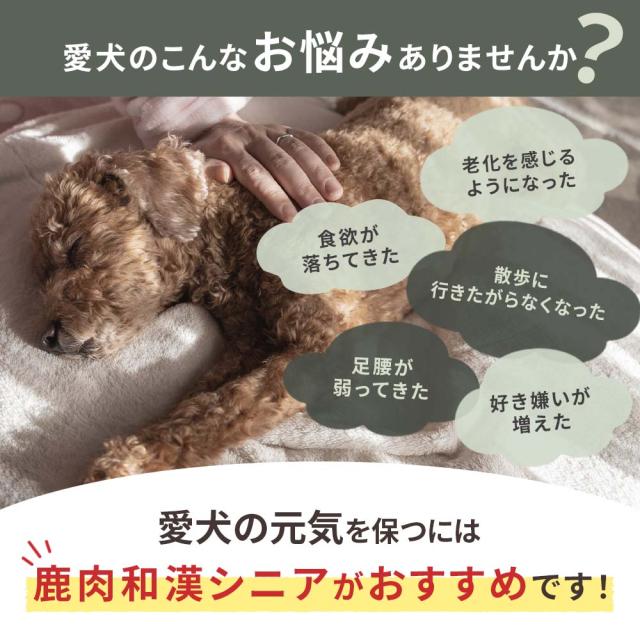 こんな悩みをもつ愛犬の健康を保つには鹿肉和漢シニアがおすすめです。